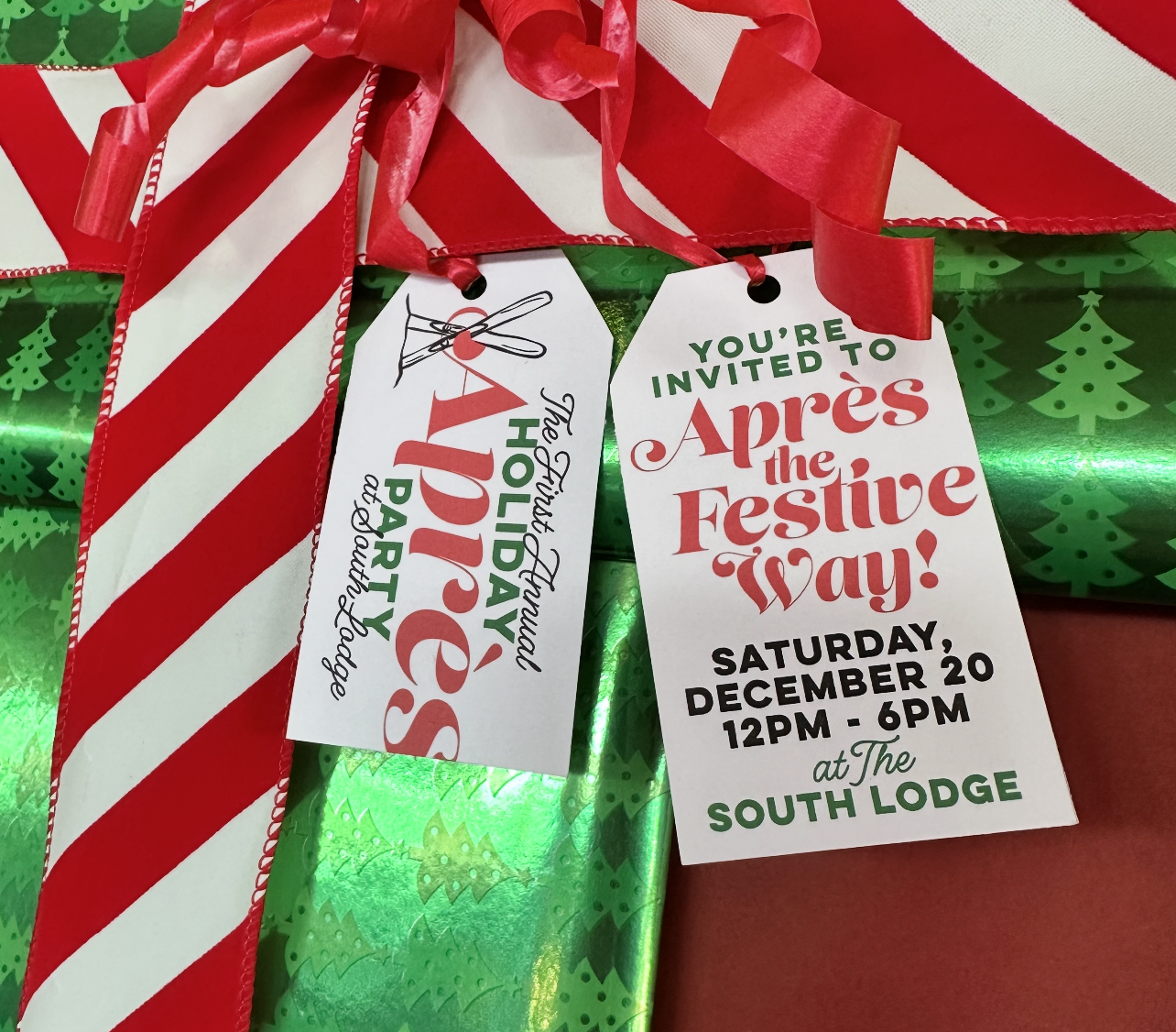 Let's après the festive way! We're kicking off our Holiday Hours with a decked out Holiday Party in the South Lodge on Saturday from 12pm - 6pm. Warm up with special cocktails, enjoy small bites, enjoy the outdoor fire pit, and surround yourself with holiday cheer.